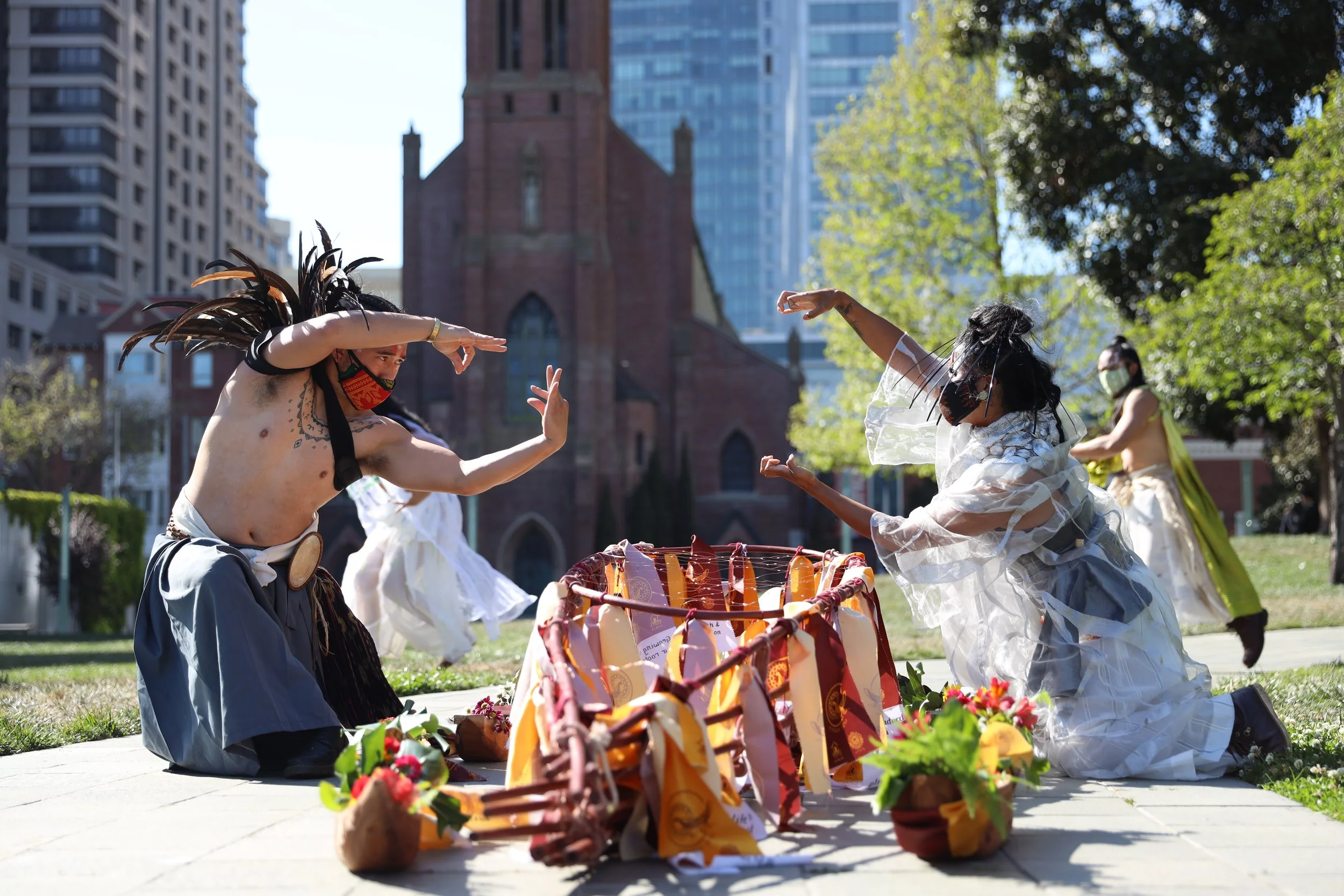 Over the course of the pandemic, Bay Area artists reimagined performances and projects in powerful ways. One inspiring example is Lakbai Diwa: Diasporic Spirit, featured in the above video, which celebrated the resilience and transformative values of the diasporic Pilipinx people. The Filipino-American Development Foundation, KULARTS and lead artist Alleluia Panis created this project with 35 participating Diasporic and Pilipinx artists and cultural practitioners. The project took place in 2020 and 2021 and featured large-scale ceremonial processions, dance performances and temporary mural painting. These activities centered indigeneity to bring visibility and collective healing to the Pilipinx community in San Francisco’s South of Market neighborhood.